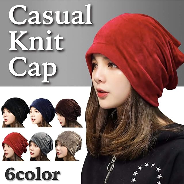 おしゃれ で 可愛い レディース カジュアル 厚手 無地 ベロア ニット キャップ!