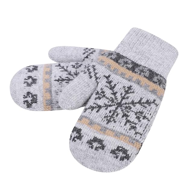 [LONTG] レディース手袋 ミトン手袋 おしゃれ 雪柄 ウール混紡 厚手 保温 冬用 韓国風 防寒グローブ 婦人 女性 通勤 通学 自転車 バイク アウトドア 寒さ対策 てぶくろ スタイリッシュ アクセサリー プレゼント グレー | AVENIR