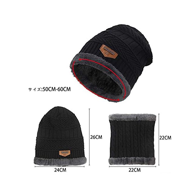 [LangSheng] 暖かい ニット帽子 裏起毛 防寒 保温 自転車 運動 通勤用キャップ セット スキー アウトドア 冬 男女兼用 (黒い)