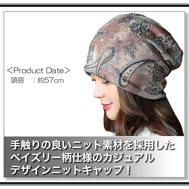2way で ネックウォーマー としても使う事が出来る おしゃれ な ペイズリー デザイン サマー ニット キャップ ! 素材が 麻 なので機能面も充実!
