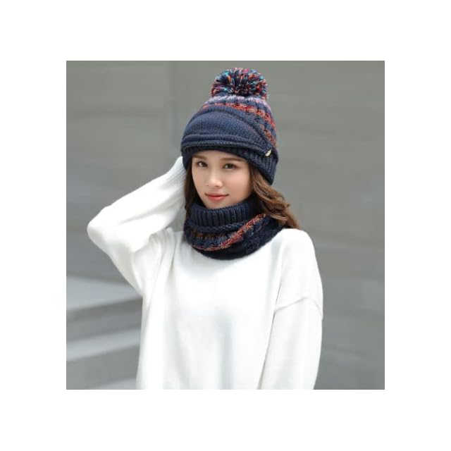 [ITODA] レディース帽子 ニット帽 ネックウォーマー 秋冬 おしゃれ 目出し帽 自転車 スキー帽子 厚手 ふわふわ あたたかい 女の子 ハット ニットキャップ 保温 防寒 アウトドア スノーボード バイク かわいい プレゼント (A) | AVENIR