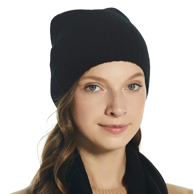 [EURKEA] ニット帽 帽子 レディース ニット カシミヤ カシミア 100% 防寒 単色 シンプル バレンタインデー ホワイトデー ギフト プレゼント KASHIMIA20-H (ブラック) | AVENIR