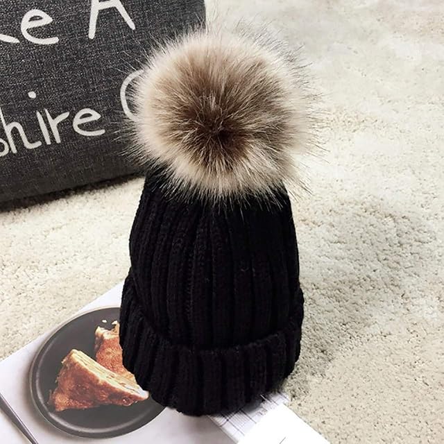 寒い 秋冬時期 に最適な レディース リブニット ファー付 カジュアル デザイン ニット キャップ。