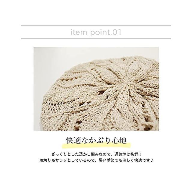 ふんわりゆったり被れる、綿100%ニットベレー帽。