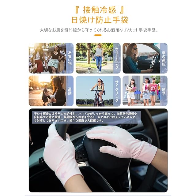 【ポイント4-滑り止め加工】:手ひらには滑り止めが付きなので、運転や自転車などにも対応できます。しっかりハンドルが握られて、安全性も高いです。