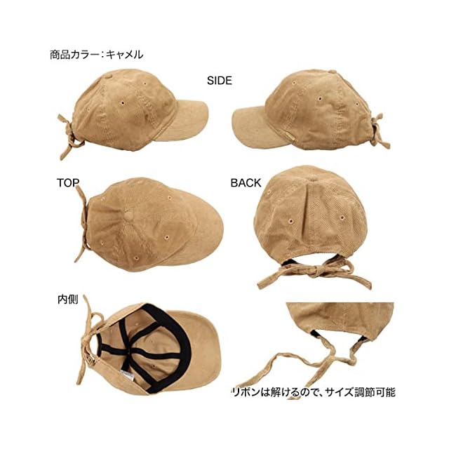 シーズンムード高まるコーデュロイ生地。被るだけで暖かみを演出できるアイテムです。後ろに甘すぎないリボンがついており、リボンはサイズ調整も兼ねた優れもの。見た目の可愛さを機能性を兼ね備えた逸品です。