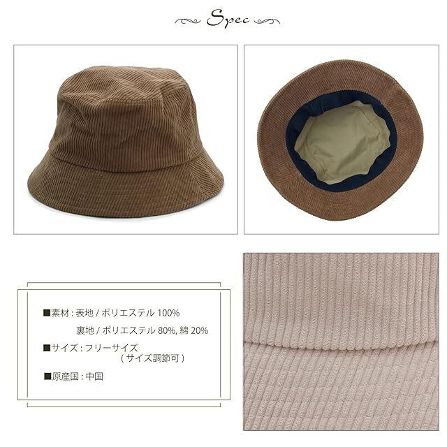 ・冬のハットアイテム、細めのコーデュロイ生地が可愛いバケットハット ・ラフに被るだけで抜け感が出てあたたかみのある秋冬コーデのアクセントに
