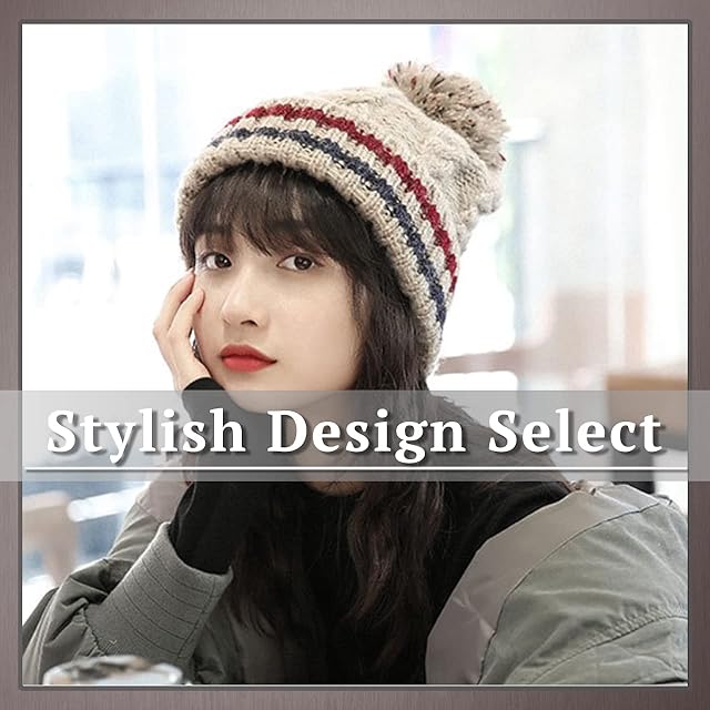 カワイイ ボンボンがついていて オシャレ で 女性らしい デザインの 厚手 レディース ニット キャップ 。