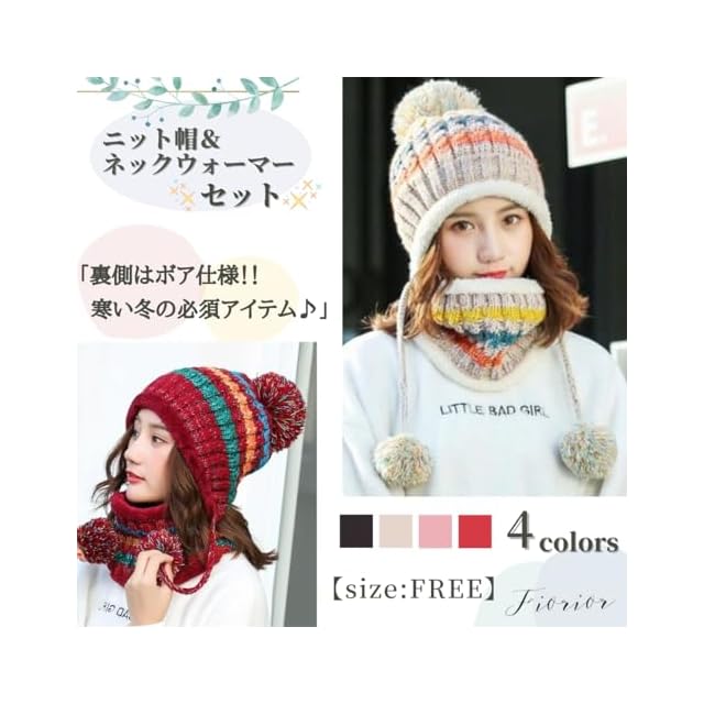 ✅ ニット帽子もネックウォーマーも裏側がボア仕様でしっかり防寒対策!ネックウォーマーは顎下にクシュっと集めて使ったり、鼻や口を覆うようにしたりできて便利。裏起毛なので肌に触れる内側は柔らかな生地で肌触りもGOOD!