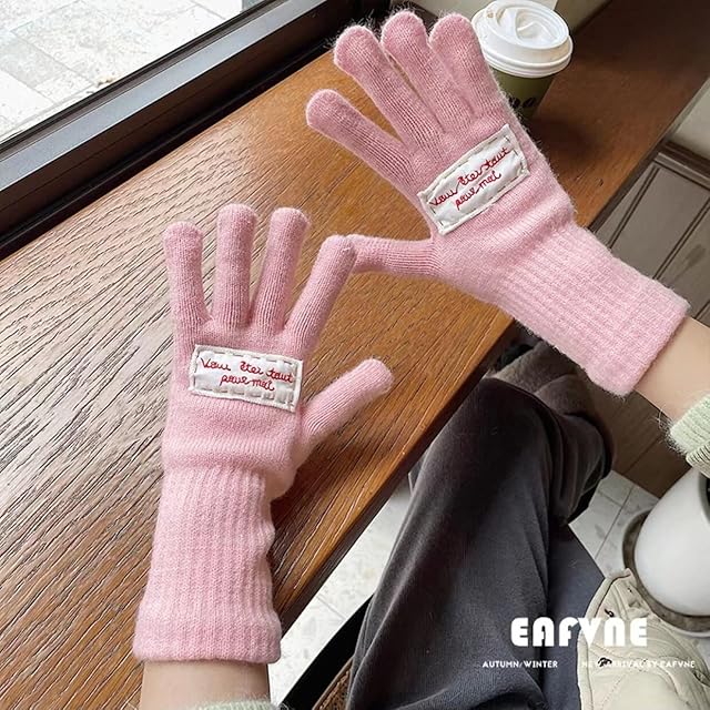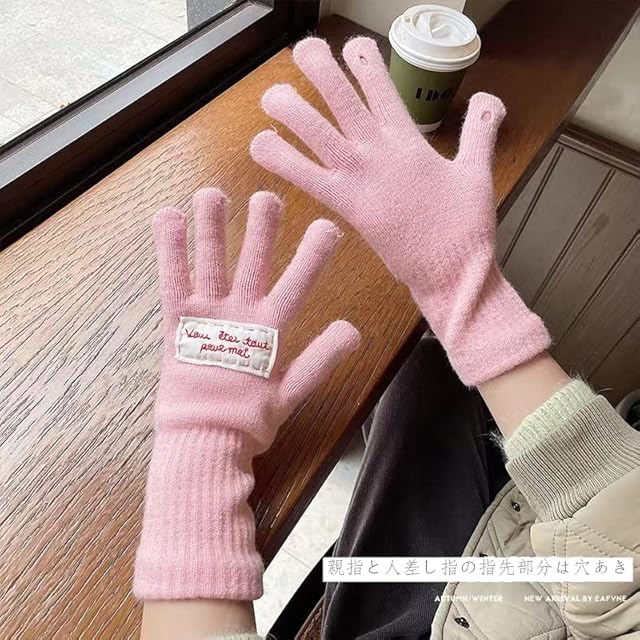 [Gincci] 手袋 手ぶくろ レディース 指先が出る 指紋認証 スマホ手袋 スマートフォン対応 タッチパネル対応 指先スリット 2WAY 五本指 手袋 オシャレ 防寒 暖かい 通勤 通学 秋冬 (ピンク)