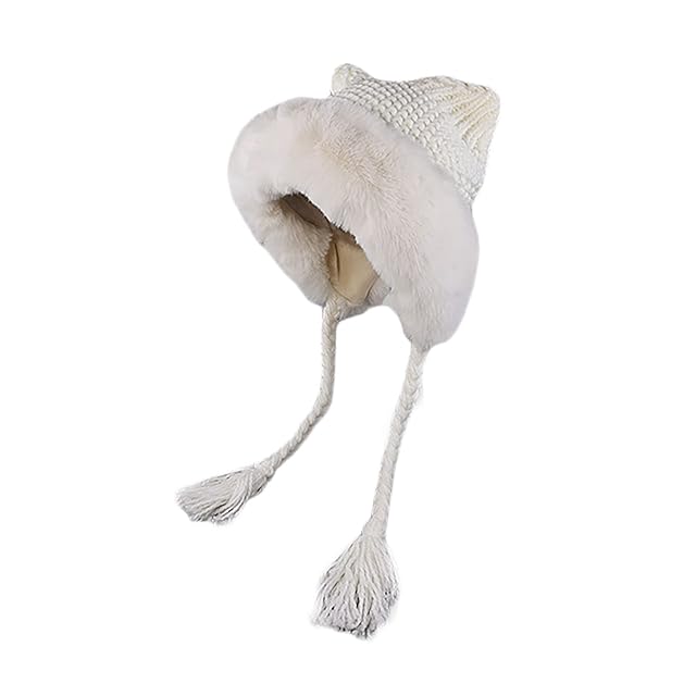 [ELVONS] 猫耳ニット帽 レディース ビーニーハット猫耳 キャップ かわいい帽子 秋冬 あったか小顔効果 伸縮性 暖かい帽子 防寒帽 裏起毛 かわいい 耳付き帽子 ニットキャップ シンプル おしゃれ アウトドア カジュアル クリスマス ギフト プレゼント (ベージュ)