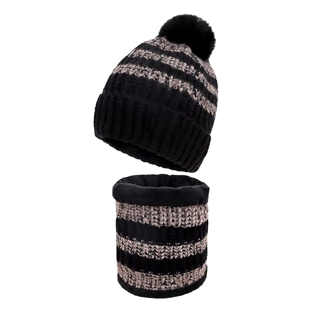 [Moonlove] ニット帽 防寒 2点セット ネックウォーマー 厚手 冬 スキー帽 メンズ レディース ビーニー ニットキャップ 防寒保温 ふわふわ スキー帽 防風 ポンポン付き 裏起毛 無地 あったか 厚手 スポーツ スキー 自転車 アウトドア 通勤