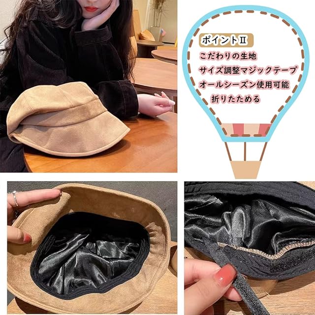つばが広く顔周りをカバー出来、視覚的に小顔に見え、急なお出かけ時のスッピン隠しにも最適なアイテムです!