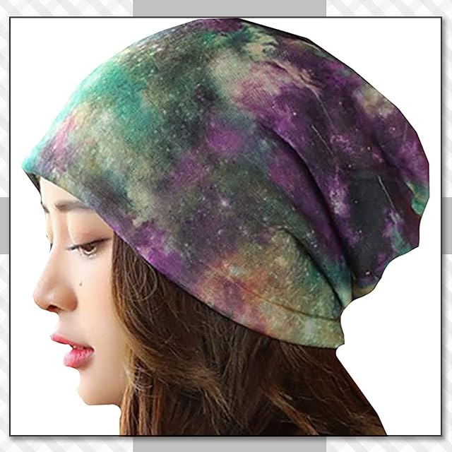 宇宙空間 が描かれている 珍しい デザイン の サマー ニット キャップ! ネックウォーマー としても使用できる 2way 仕様です。