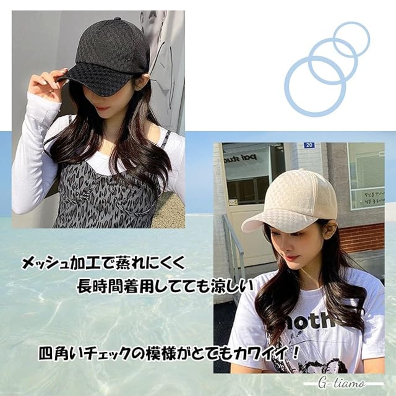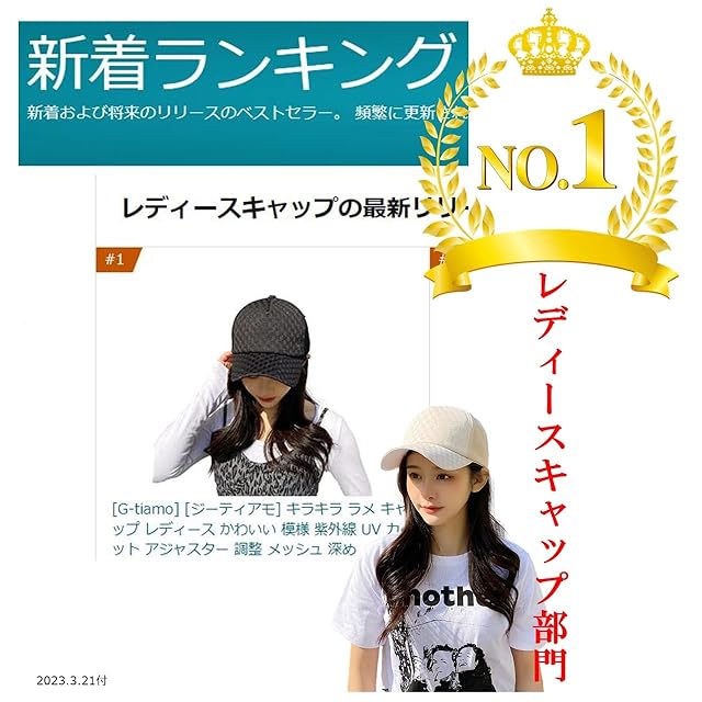 [G-tiamo] [ジーティアモ] キラキラ ラメ キャップ レディース かわいい 模様 紫外線 UV カット アジャスター 調整 メッシュ 深め ギンガム チェック 小顔 帽子 きゃっぷ ぼうし ボウシ 黒 ブラック 白 ホワイト 可愛い カワイイ お洒落 オシャレ 日除け サイズ 軽量 小さい 日よけ (アイボリー) | AVENIR