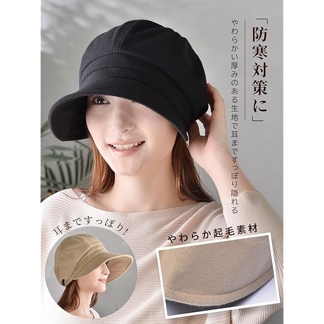 [WEISHY] 帽子 レディース 秋冬 キャスケット レディース 大きいサイズ 帽子 防寒 耳まですっぽり 小顔効果 つば広 完全遮光 起毛 暖かい UVカット100% 折りたたみ 秋 冬 おしゃれ あご紐付き | AVENIR
