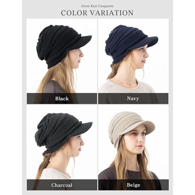 [Loo&c] [ルーアンドシー] 帽子 つば付き ニット帽 グロウニットキャスケット 大きいサイズ レディース ゆったりサイズ ニットキャップ 防寒 耳あて【フリー(56-64cm)-ネイビー】 | AVENIR