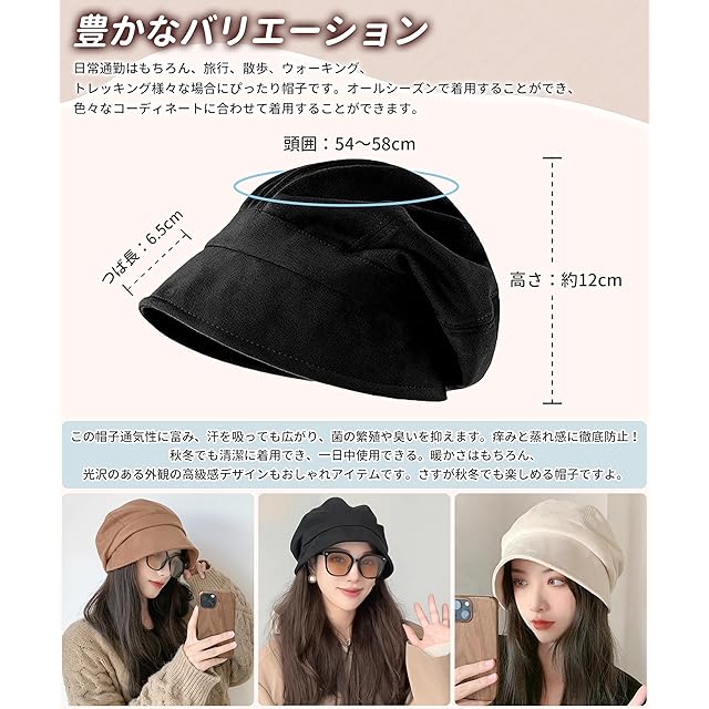 【持ち運びに便利】帽子は柔らかい素材、ふんわりと頭を包み込む軽い被り心地で、帽子が苦手な方もおしゃれにかぶれる、使いまわし抜群の帽子です。使わない時はコンパクトにバッグに収納できます。ちょっとしたお出かけ用にも便利です。
