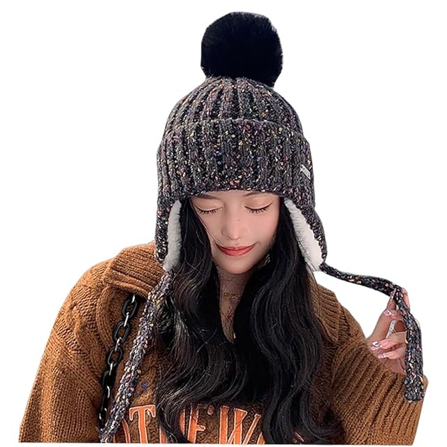 [ミナコライフ] ニット帽 ポンポン 大きいサイズ 耳あて付手編み レディース 秋冬 スキー スノボ 防寒 雪山 メンズ ケーブル編み (パープル)