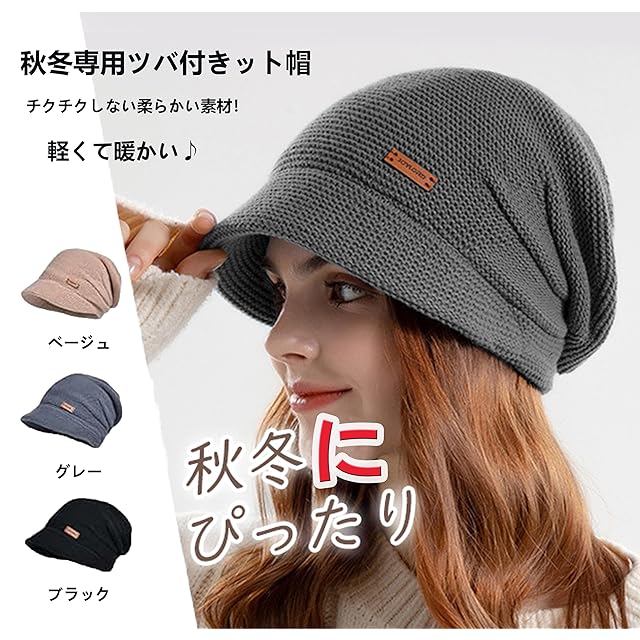 [Mukeyo] ニット帽 レディース 秋冬 防寒防風 保温 柔らかい 締め付け感ゼロ 小顔効果 通気 ふんわり 帽子 ニットキャップ ケア帽子 無地 耳まで暖かい カジュアル (グレー) | AVENIR