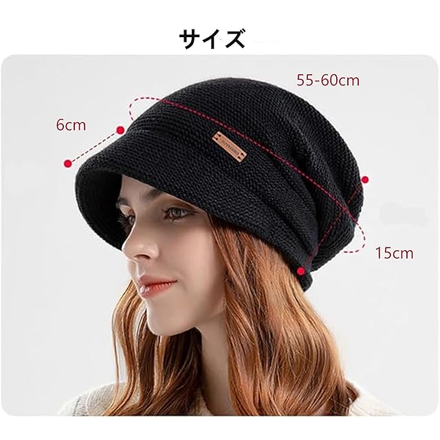 【定番なつば付きニット帽】定番なつば付きニット帽として、帽子の前面部分のは小さなつばデザインで、しっかりしたつばとデザイン性で、視界を遮らないと同時に小顔に見せる効果があり、どんな顔型も小顔になれます。長時間つけても窮屈感がなく、ゆったりとつけられるサイズ感。フィット感も抜群。