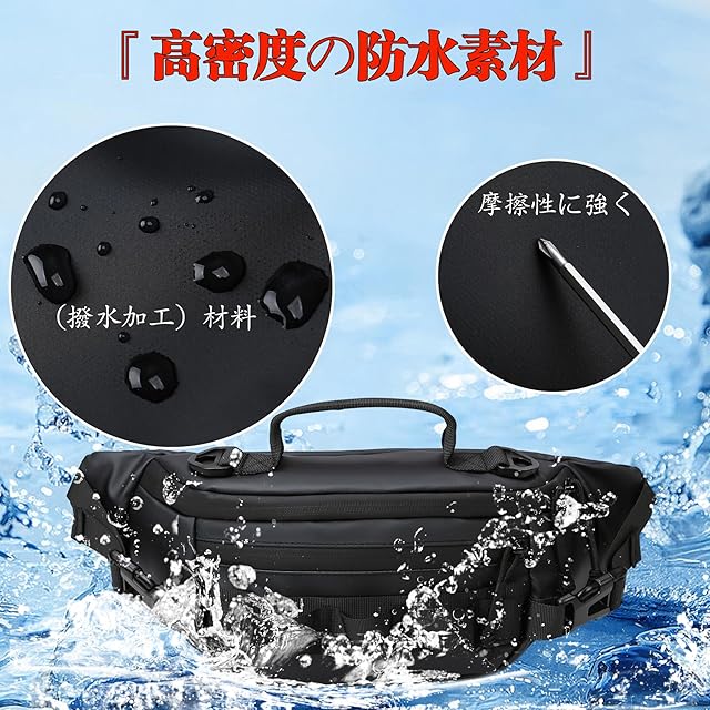 【上質な生地】防水 ポーチの『サイズ』約39×16×10cm。高密度の防水素材を採用されて摩擦性に強く、耐久性に優れています、洗濯可能でお手入れ簡単防水バッグ。高品質の防水ファスナーを使用、しっかりと閉じるので、中身の物品を守りななめがけバッグ メンズです。両方向の引き、物の取り出しが速くて容易。ウエストポーチのベルトはナイロン製で通気性に優れ、体にもしっかりフィットし長時間の持ち運びでも疲れにくいです。長さ34cm〜113cmまで、体型に合わせてぴったり調整出来ます。写真を撮った時の光線やお使いのPCモニター環境により、画像のカラーは実物と若干色収差があるかもしれません。※完全防水ではありません