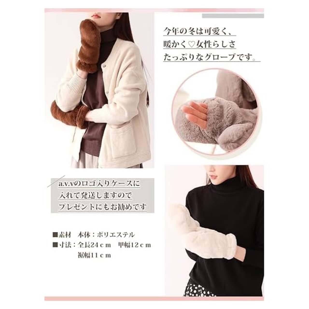 ?2024.11.09 ダークグレー追加!?ふわもこ素材がオシャレな、ミトングローブです。毛足が長く柔らかな、心地良い肌触りが魅力のフェイクファーを使用し、大人カジュアルな仕上がりとなりました。裏起毛でしっかりと防寒対策をしながらも、いつものコーデに上品なアクセントをプラスできるアイテムとなっています。