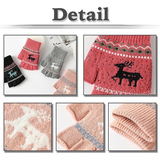 ノルディック柄とトナカイのデザインがかわいい レディース カジュアル グローブ ニット 手袋。
