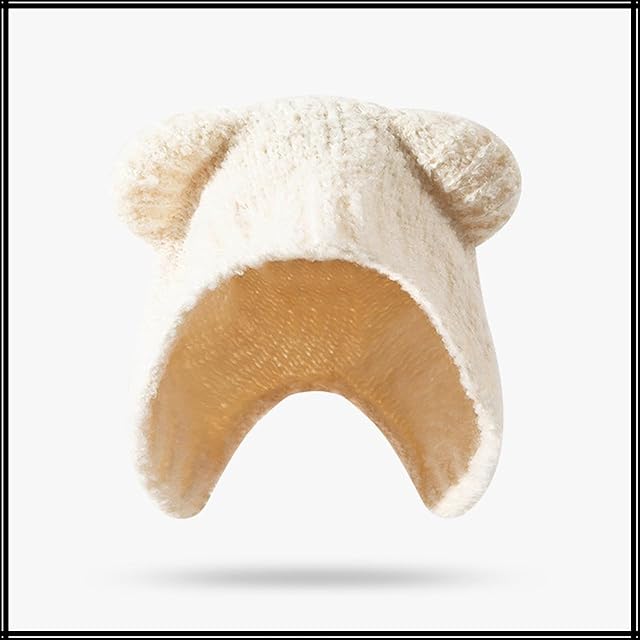 くま耳付きで、もこもこ過ぎない柔らかいデザインが特徴的な レディース カジュアル デザイン 耳付き ニット帽。