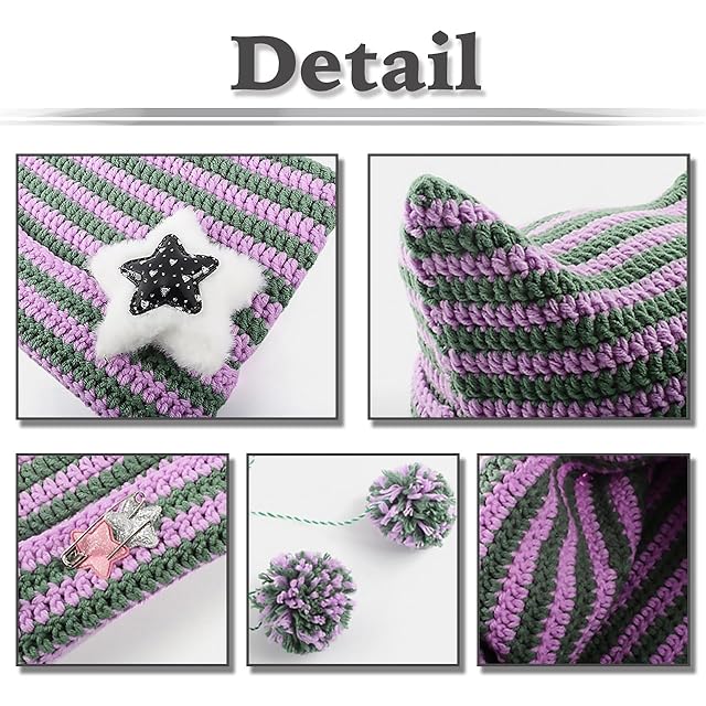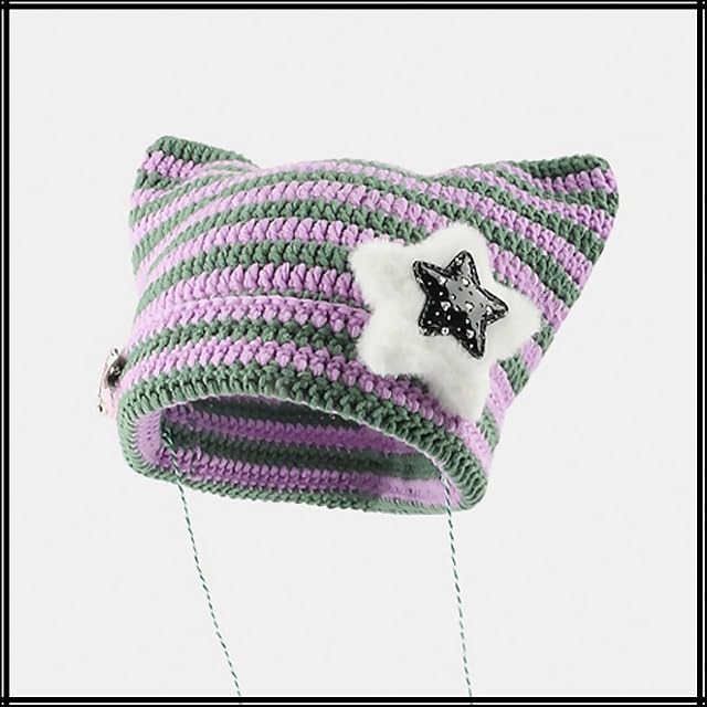 猫耳のニット帽にボンボンがぶら下がったアニマルデザインの レディース カジュアル デザイン ニット帽。
