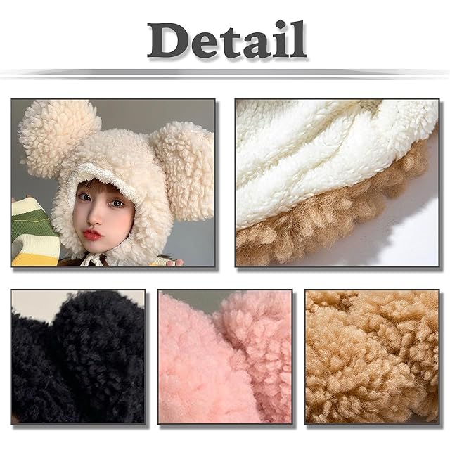 ふわふわでもこもこの大きな耳付きのクマさんが特徴的な レディース カジュアル デザイン 耳付き帽子。