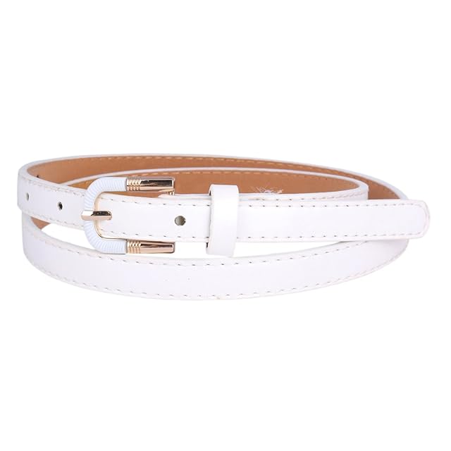 [Adoptfade] ベルト レディース 細ベルト PUレザー ビジネス 通勤用 長さ調整可能 バックル ホワイト
