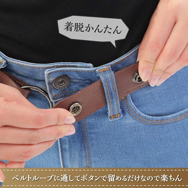 ベルトループにベルト両端のボタンを留めて簡単着用 付属の丸リングで使えばベルトループが無いボトムでも着用可能