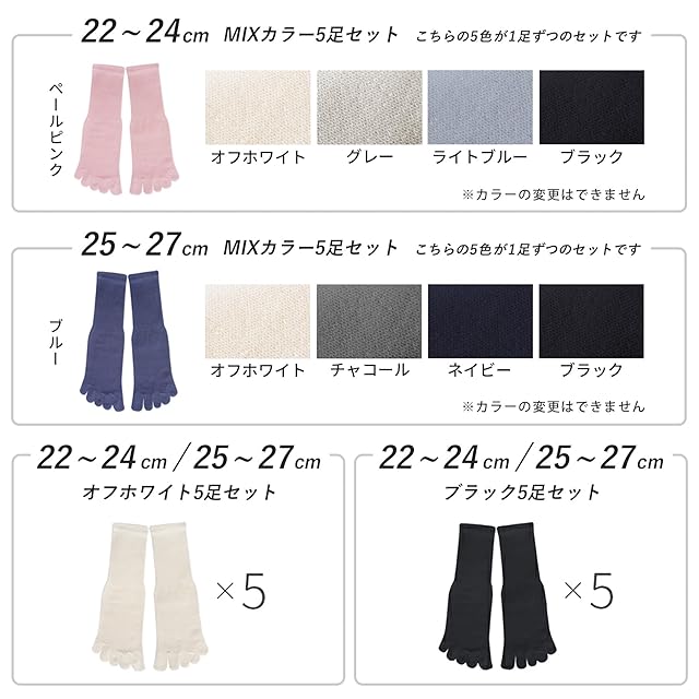 color:MIXカラー5足セット size:25.0-27.0 cm: