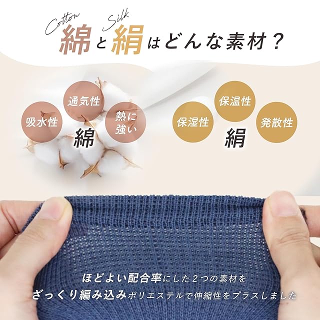 シルク混のお肌に優しい5本指ソックスです。