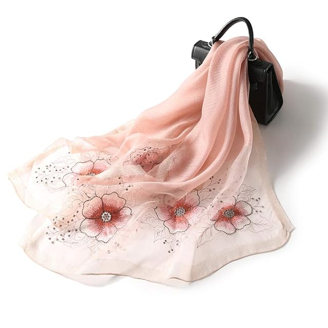 [ANMIDA] アンミダ 大判ストール スカーフ マフラー ストール フラワー柄 花 ショール 刺繍 大判ストール シルク レディース 春夏 上品 おしゃれ 海 旅行 日焼け防止 uv UV対策 | AVENIR