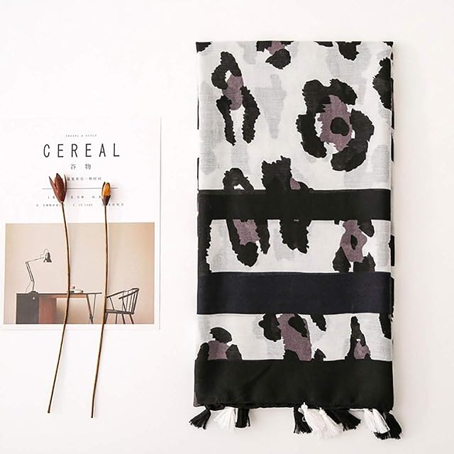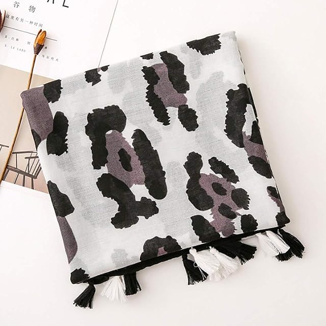 シックな色合いが おしゃれな カジュアルファッション ヒョウ柄 アニマル ストール 。折りたたみストールの様に使うのも◎ 色々な巻き方で 印象が大きく変わる おしゃれ アイテム。