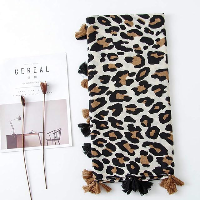 フリンジ アフガンスタイルのおしゃれ な ヒョウ柄 大判 ストール 。折りたたみストールの様に使うのも◎ 色々な巻き方で 印象が大きく変わる おしゃれ アイテム。
