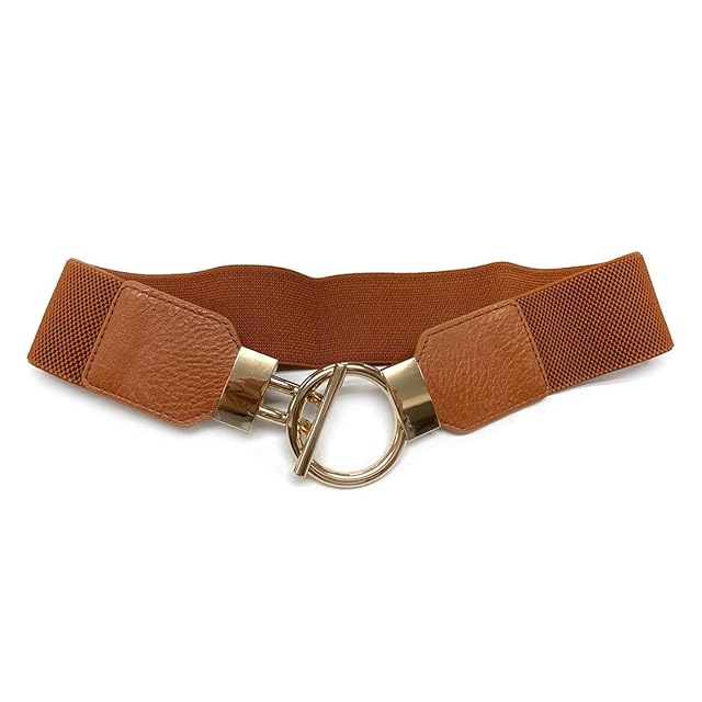 [Estimation エスティメイション] ゴムベルト レディース〔キャメル/フリーサイズ:約70cm-約80cm〕シンプル サッシュ ゴム ベルト レザー 合皮 ウエストマーク バックル フォーマル ドレス パーティ 衣装 幅広 太い コルセット伸縮性 伸びる くびれ 引き締め 大きいサイズ 女性用 (キャメル)130-57