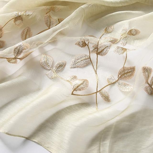 全体に花柄刺繍が施されたエレガントな大判シルクストールです。刺繍によりとっても華やかな魅力的ストールです。夏のUV対策にも秋冬のオシャレに使っていただけるストールです。
