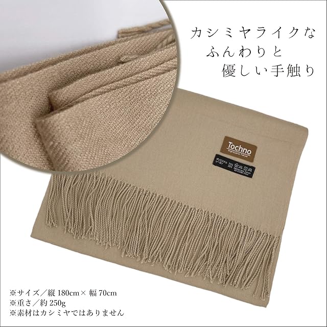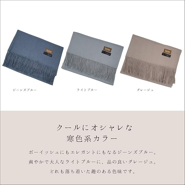 特徴:程よい厚みの大判ストール。首に巻く、羽織る、膝にかけるetc、使い方は様々。