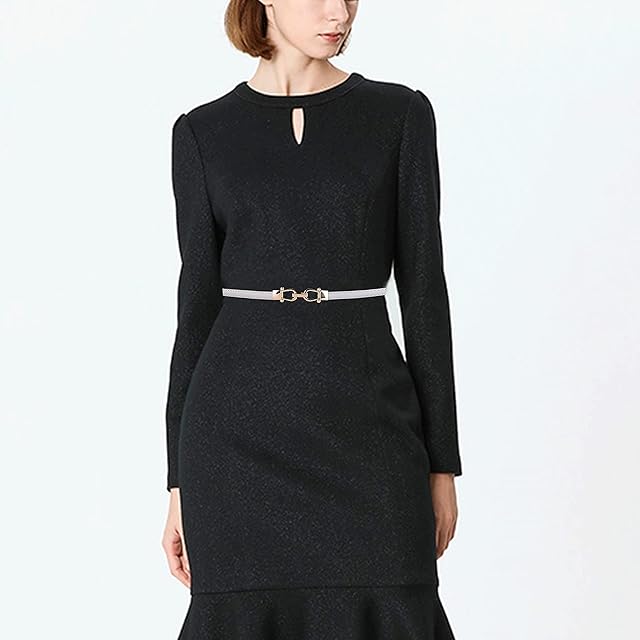 デザインのメリット:①スライドのデザインで、簡単にご自分のジャストサイズに調整できる。②エレガントな細いベルトで、パンツだけではなくて、チュニックやシャツとのコーディネートも綺麗。