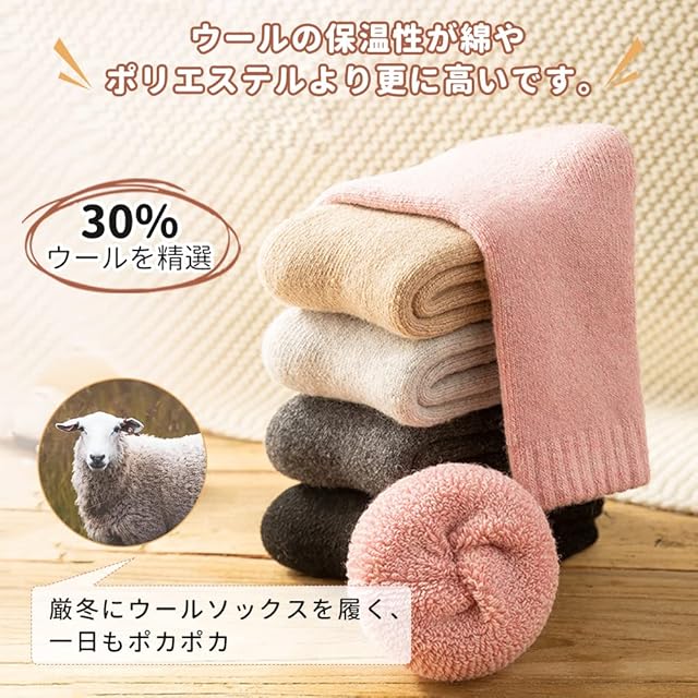 【抗菌・防臭・通気性】発熱ぽかぽかなウール素材で足元冷え性さんには特におすすめの防寒用靴下。非常に柔らかく通気性に優れた天然ウール・コットンを使用。 優れた排湿性、蒸れず、清潔に保ちます。吸湿性や速乾性にも優れていますので、秋、冬にオススメの靴下です!