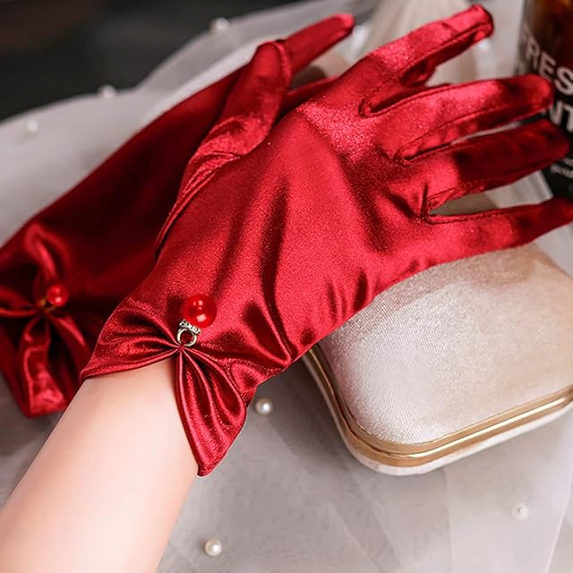ウェディンググローブ サテン 手袋 ブライダル ショート 花嫁グローブ レディース 2点セット オシャレ 可愛い 無地 ビーズ付き uvカット 滑り止め 刺繍 滑り止め 薄手 結婚式 披露宴 二次会 ダンス 演奏会 コンサートドレス用 パーティー 花嫁用品 フリーサイズ レッド | AVENIR