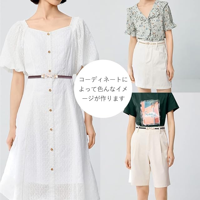 [Macoking] ベルト レディース 細 細ベルト 激細 カジュアル おおきいサイズ メタル風 柔らかい レザーベルト ゴルフ スーツ ビジネス おしゃれ プレゼント 女性 人気 カーキ | AVENIR