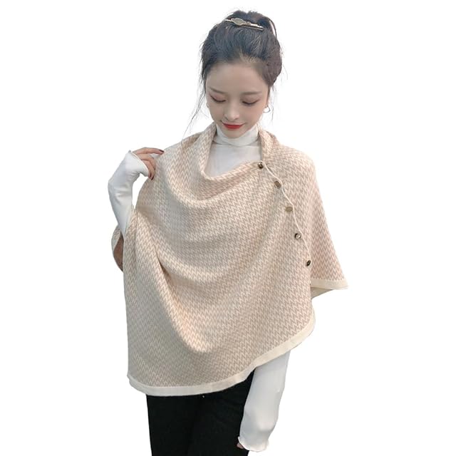 [LeafIn] レディース カーディガン マフラー ストール ショール ポンチョ 羽織り ひざ掛け 防寒 秋冬 ボタン付き 3way ニット 大判 肩掛け 膝掛け ボタンストール 春 秋 冬 348(B-ベージュ) | AVENIR