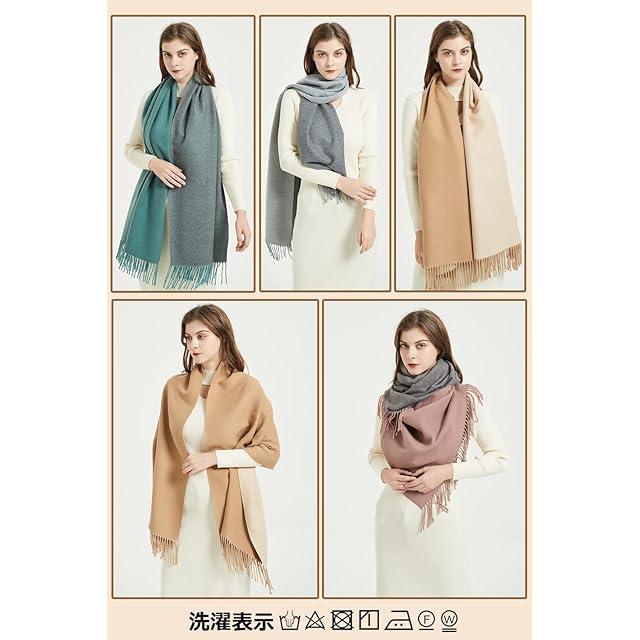 【柔らかい生地感】生地の光沢度は自然に柔らかく、軽いのに暖かくしっとりとした優しい肌触りに仕上がっています。寒い季節には欠かせないマフラー。首元を暖かく保ってくれる機能性だけでなく、秋冬のコート、ジャケットスタイルにアクセントを加えてくれるのも魅力の一つです。冷房対策や、秋冬の防寒対策に欠かせない大判スカーフです。
