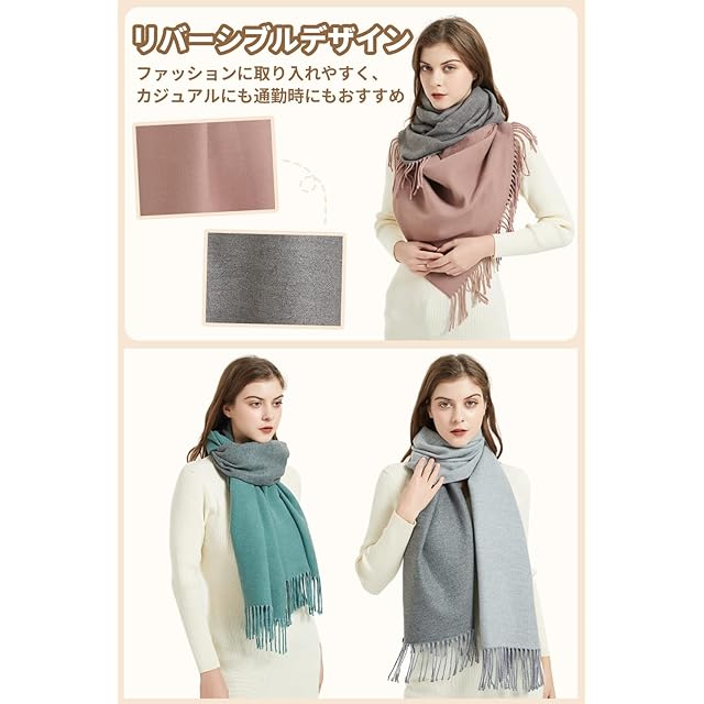 【両面異なるカラー】両面使えるオシャレなマフラーが新登場!両面の色が違うので巻き方で色の見え方が異なってくるので、楽しめるマフラーです。ひざにかけたりと様々なシーンで活躍しそうです。リバーシリンジが高品質の証。ぐるぐる巻くだけでも綺麗なアクセントに。防寒、防風、保温効果が素晴らしくて、夏にエアコンの冷房対策の肩掛けとして、秋冬春に保温首巻きとして。