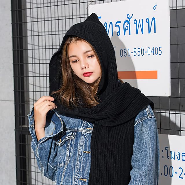 [XGOPTS] 帽子マフラー フード付きマフラー レディース メンズ ロング おしゃれ 毛糸 ニット帽子 ネックウォーマー 一体型 秋冬 暖かい 保温 防寒帽子 ストール 小顔効果 ファッション小物 大人 女の子 男の子 お出かけ アウトドア 旅行 黒 | AVENIR