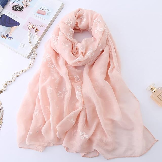 [WOWULOVELY] ストール レディース 大判 マフラー ショール 春 夏 日焼け予防 冷房対策 綿 薄手 マフラー 母の日 プレゼント 誕生日 敬老の日 贈り物 ギフトボックス付き(プリント-ピンク) | AVENIR